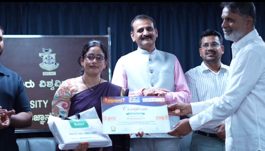 ಮೈಸೂರು, ಜನವರಿ 17,2026 : ಮೈಸೂರು ವಿಶ್ವವಿದ್ಯಾನಿಲಯದ ನೇತೃತ್ವದಲ್ಲಿ ನಗರದಲ್ಲಿ ಇತ್ತೀಚೆಗೆ ನಡೆಸಲಾದ ಫಿಟ್ ಮೈಸೂರು ವಾಕಥಾನ್ಗೆ ಅಭೂತಪೂರ್ವ ಯಶಸ್ಸು ದೊರೆತ ಹಿನ್ನೆಲೆಯಲ್ಲಿ ವಾಕಥಾನ್ ಯಶಸ್ಸಿಗೆ ಕಾರಣರಾದವರಿಗೆ ಕೃತಜ್ಞತೆ ಸಲ್ಲಿಸಲಾಯಿತು. ನಗರದ ಮಾನಸಗಂಗೋತ್ರಿಯ ವಿಜ್ಞಾನ ಭವನದಲ್ಲಿ ನಡೆದ ಸಮಾರಂಭದಲ್ಲಿ ಫಿಟ್ ಮೈಸೂರು ವಾಕಥಾನ್ ಆಯೋಜನೆ ಹಾಗೂ ಅದರ ಯಶಸ್ಸಿಗೆ ಎಲ್ಲಾ ರೀತಿಯಲ್ಲೂ ಸಹಕರಿಸಿದ ಹಲವು ಪ್ರಮುಖರು ಹಾಗೂ ವಿವಿಧ ಸಂಘ-ಸಂಸ್ಥೆಗಳಿಗೆ ಅಭಿನಂದನೆ ಸಲ್ಲಿಸಲಾಯಿತು. ಕಾರ್ಯಕ್ರಮದಲ್ಲಿ ಮೈಸೂರು ವಿಶ್ವವಿದ್ಯಾನಿಲಯದ ಕುಲಪತಿ ಪ್ರೊ. ಎನ್.ಕೆ.ಲೋಕನಾಥ್ ಅವರು ಪ್ರಶಂಸನಾ ಪತ್ರವನ್ನು ನೀಡಿ ಅಭಿನಂದಿಸಿದರು. ಈ ಸಂದರ್ಭದಲ್ಲಿ ಮಾತನಾಡಿದ ಎನ್.ಕೆ.ಲೋಕನಾಥ್,…