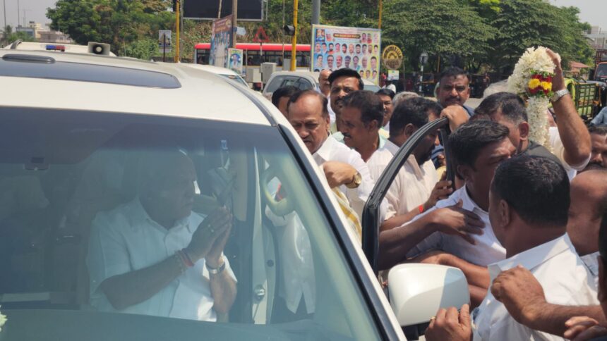 ಮೈಸೂರು, ಮಾರ್ಚ್ 5, 2026 : ಮಾಜಿ ಮುಖ್ಯಮಂತ್ರಿ ಬಿ.ಎಸ್. ಯಡಿಯೂರಪ್ಪ ಅವರು ಇಂದು ಮೈಸೂರು ಜಿಲ್ಲೆಯಲ್ಲಿ ಪ್ರವಾಸ ಕೈಗೊಂಡಿದ್ದು, ಮಾರ್ಗಮಧ್ಯೆ ನಂಜನಗೂಡಿನಲ್ಲಿ ಬಿಜೆಪಿ ಮುಖಂಡರು ಮತ್ತು ಕಾರ್ಯಕರ್ತರು ಅವರನ್ನು ಅದ್ಧೂರಿಯಾಗಿ ಸ್ವಾಗತಿಸಿದರು. ಮೈಸೂರಿನಿಂದ ಗುಂಡ್ಲುಪೇಟೆ ಕಡೆಗೆ ತೆರಳುತ್ತಿದ್ದ ಯಡಿಯೂರಪ್ಪ ಅವರನ್ನು…