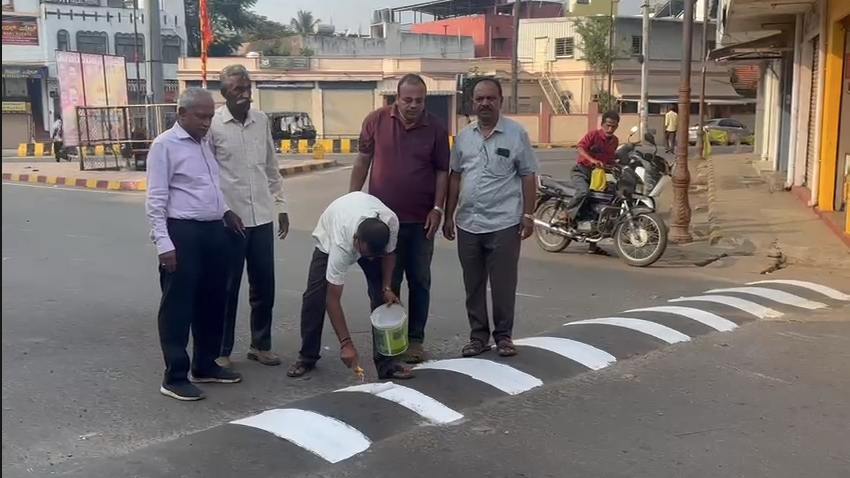 ಸಮಾಜ ಸೇವಕನ ಸಾಮಾಜಿಕ ಕಳಕಳಿ : ರೋಡ್ ಹಂಪ್ ಗಳಿಗೆ ಬಣ್ಣಬಳಿದು ಬರ್ತ್ ಡೇ ಆಚರಣೆ !