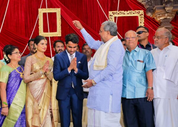 ಮೈಸೂರು, ನವೆಂಬರ್ 3, 2025:ಮುಖ್ಯಮಂತ್ರಿ ಸಿದ್ದರಾಮಯ್ಯ ಅವರು ಮೈಸೂರಿನಲ್ಲಿ ತಮ್ಮ ಆಪ್ತ ಹಾಗೂ ಬೆಂಬಲಿಗರಾದ ಮರಿಸ್ವಾಮಿ ಅವರ ಪುತ್ರನ ವಿವಾಹ ಸಮಾರಂಭದಲ್ಲಿ ಪಾಲ್ಗೊಂಡು ನವ ದಂಪತಿಗಳಿಗೆ ಶುಭ ಹಾರೈಸಿದರು.