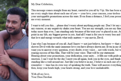 ಪ್ರೀತಿಯ ಸೆಲಿಬ್ರಿಟಿಗಳಿಗೆ ಜೈಲಿನಿಂದಲೇ D BOSS ದರ್ಶನ್ ಸಂದೇಶ..!