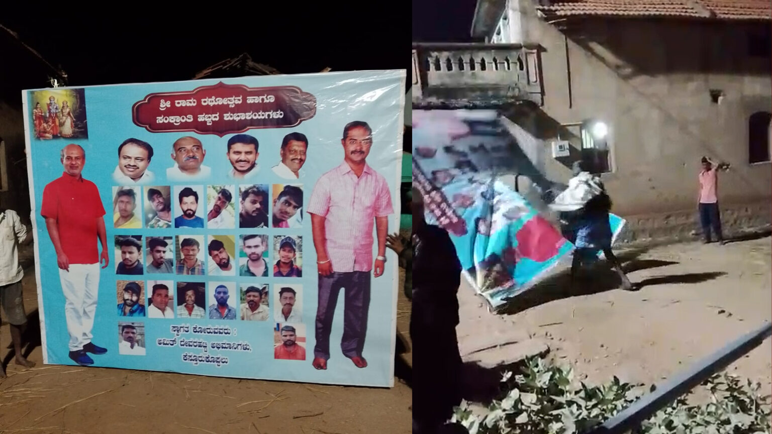 ಮೈಸೂರು, ಜನವರಿ 17,2026 : ಮುಖ್ಯಮಂತ್ರಿ ಸಿದ್ದರಾಮಯ್ಯ ಅವರ ತವರು ಜಿಲ್ಲೆಯಾದ ಮೈಸೂರಿನಲ್ಲಿ ಫ್ಲೆಕ್ಸ್ ರಾಜಕಾರಣ ತಾರಕಕ್ಕೇರಿದೆ.ಚುಂಚನಕಟ್ಟೆ ರಥೋತ್ಸವದ ಹಿನ್ನೆಲೆಯಲ್ಲಿ ಗ್ರಾಮದಲ್ಲಿ ಅಳವಡಿಸಲಾಗಿದ್ದ ಕೇಂದ್ರ ಸಚಿವ ಹೆಚ್.ಡಿ. ಕುಮಾರಸ್ವಾಮಿ, ಮಾಜಿ ಸಚಿವ ಸಾ.ರಾ. ಮಹೇಶ್, ಹುಣಸೂರು ಶಾಸಕ ಜಿ.ಡಿ. ಹರೀಶ್ ಗೌಡ ಹಾಗೂ ಎಂಎಲ್ಸಿ ಎಚ್. ವಿಶ್ವನಾಥ್ ಅವರ ಭಾವಚಿತ್ರಗಳಿದ್ದ ಫ್ಲೆಕ್ಸ್ ಅನ್ನು ದುಷ್ಕರ್ಮಿಯೊಬ್ಬ ಹರಿದು ಹಾಕಿ, ಕಾಲಿನಿಂದ ಒದ್ದು ಬೀಳಿಸುವ ಮೂಲಕ ವಿಕೃತಿ ಮೆರೆದಿದ್ದಾನೆ.
