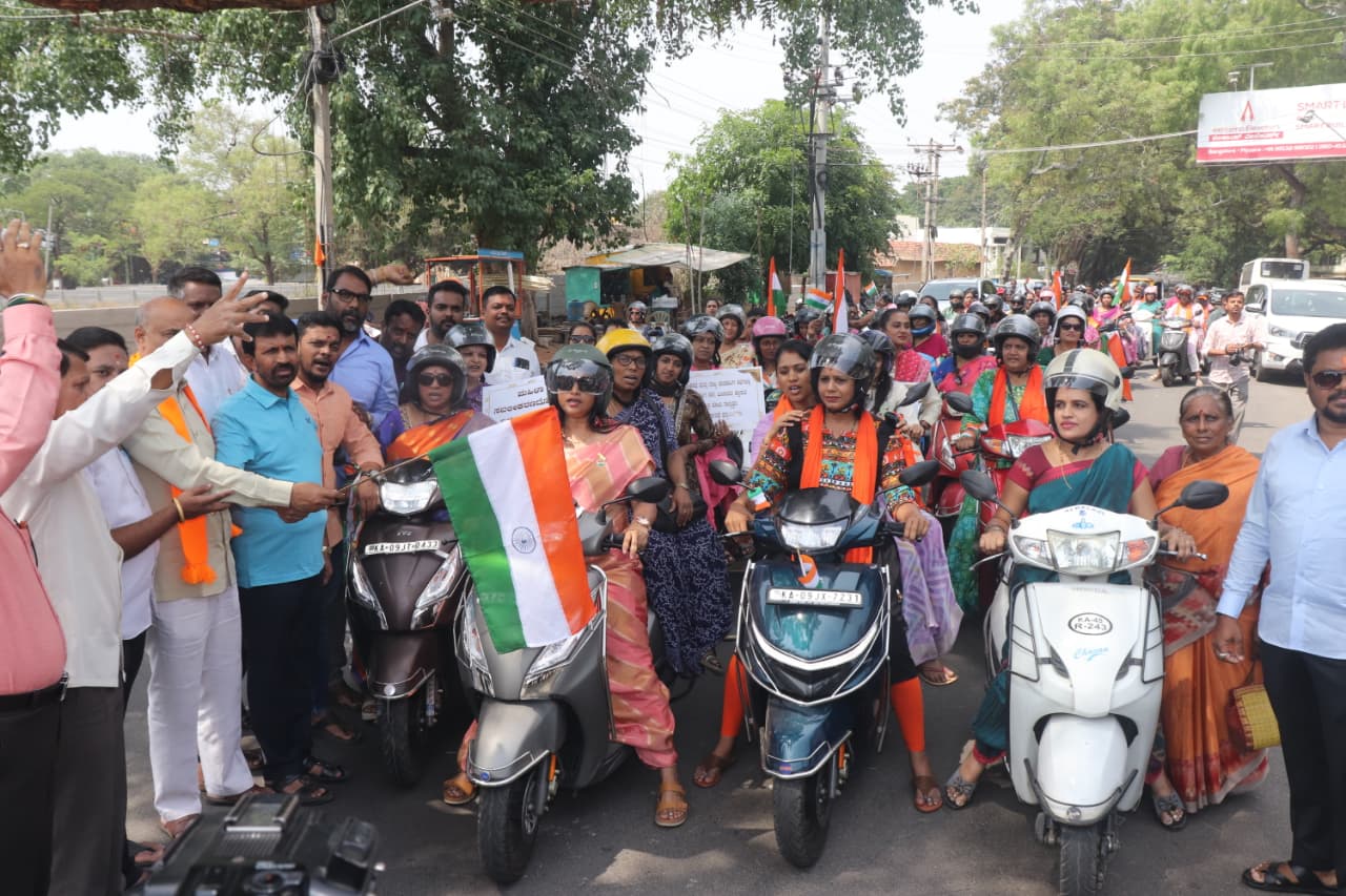 ನಗರದ ಪ್ರಮುಖ ಕೇಂದ್ರವಾದ ರಾಮಸ್ವಾಮಿ ವೃತ್ತದಿಂದ ಆರಂಭಗೊಂಡ ಬೈಕ್ ರ್ಯಾಲಿಗೆ ಅಧಿಕೃತ ಚಾಲನೆ ನೀಡಲಾಯಿತು. ಈ ಸಂದರ್ಭದಲ್ಲಿ ಕೇಸರಿ ಧ್ವಜಗಳನ್ನು ಹಿಡಿದು, ಘೋಷಣೆಗಳನ್ನು ಕೂಗುತ್ತಾ ಸಾಗಿದ ಮಹಿಳೆಯರು ಇಡೀ ನಗರದಲ್ಲಿ ಹಬ್ಬದ ವಾತಾವರಣ ನಿರ್ಮಿಸಿದರು. ಬೈಕ್ ರ್ಯಾಲಿಯು ನಗರದ ಪ್ರಮುಖ ರಸ್ತೆಗಳ ಮೂಲಕ ಸಾಗಿ ಸಾರ್ವಜನಿಕರ ಗಮನ ಸೆಳೆಯಿತು.