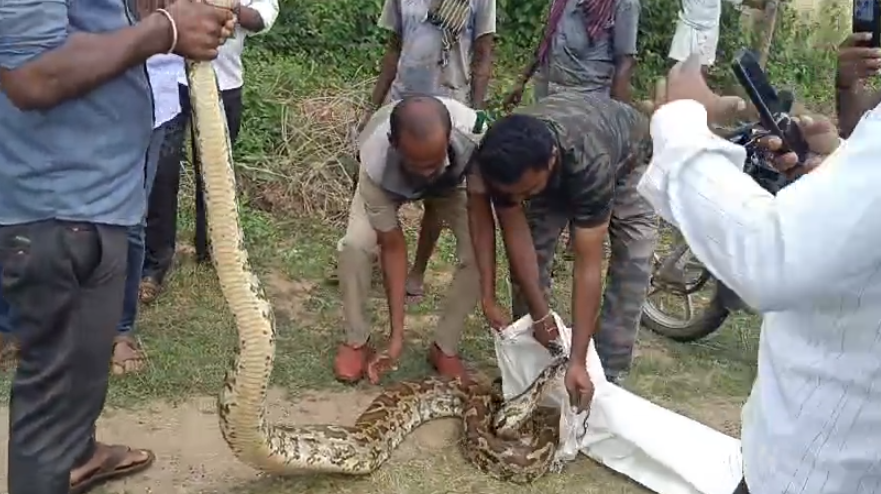 ಶಾಲೆಯ ಆವರಣದಲ್ಲಿ ಸುಮಾರು 15 ಅಡಿ ಉದ್ದದ ಭಾರೀ ಗಾತ್ರದ ಹೆಬ್ಬಾವು ಪ್ರತ್ಯಕ್ಷವಾಗಿದ್ದು, ಶಿಕ್ಷಕರು ಮತ್ತು ವಿದ್ಯಾರ್ಥಿಗಳಲ್ಲಿ ಆತಂಕ ಮನೆ ಮಾಡಿತ್ತು. ನಂತರ ವಿಷಯ ತಿಳಿದ ಅರಣ್ಯ ಇಲಾಖೆ ಸಿಬ್ಬಂದಿ ಸ್ಥಳಕ್ಕೆ ಧಾವಿಸಿ, ಗ್ರಾಮಸ್ಥರ ಸಹಾಯದಿಂದ ಭಾರೀ ಗಾತ್ರದ ಹೆಬ್ಬಾವು ರಕ್ಷಣೆ ಮಾಡಿದ್ದಾರೆ. ಹಾಗೂ ರಕ್ಷಿಸಿದ ಹೆಬ್ಬಾವನ್ನು ಸುರಕ್ಷಿತವಾಗಿ ದೂರದ ಅರಣ್ಯ ಪ್ರದೇಶಕ್ಕೆ ರವಾನೆ ಮಾಡಿದ್ದಾರೆ.