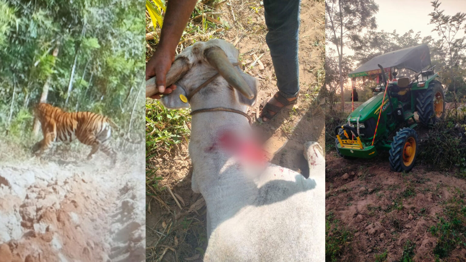 ನಾಗರಹೊಳೆ ರಾಷ್ಟ್ರೀಯ ಉದ್ಯಾನವನದ ಅಂಚಿನಲ್ಲಿರುವ ಈ ಗ್ರಾಮದಲ್ಲಿ ರೈತ ತನ್ನ ಜಮೀನಿನಲ್ಲಿ ಟ್ರ್ಯಾಕ್ಟರ್ ಮೂಲಕ ಉಳುಮೆ ಮಾಡುತ್ತಿದ್ದಾಗ ಈ ಆತಂಕಕಾರಿ ಘಟನೆ ಸಂಭವಿಸಿದೆ. ಕೆಲಸದಲ್ಲಿ ಮಗ್ನರಾಗಿದ್ದ ವರ್ಷಿತ್ ಗೌಡ ಅವರ ಮೇಲೆ ಏಕಕಾಲಕ್ಕೆ ಎರಡು ಹುಲಿಗಳು ದಾಳಿಗೆ ಮುಂದಾದವು. ತಕ್ಷಣ ಎಚ್ಚೆತ್ತುಕೊಂಡ ರೈತ ಗಾಬರಿಯಾಗದೆ ಸಮಯಪ್ರಜ್ಞೆ ಮೆರೆದಿದ್ದಾರೆ. ಜೋರಾಗಿ ಕೂಗಿಕೊಳ್ಳುತ್ತಾ ಹುಲಿಗಳತ್ತಲೇ ಅಡ್ಡಾದಿಡ್ಡಿಯಾಗಿ ಟ್ರ್ಯಾಕ್ಟರ್ ಚಲಾಯಿಸಿದ್ದಾರೆ. ರೈತನ ಈ ಧೈರ್ಯ ಮತ್ತು ಟ್ರ್ಯಾಕ್ಟರ್ ಅಬ್ಬರಕ್ಕೆ ಬೆದರಿದ ಹುಲಿಗಳು ದಾಳಿ ಕೈಬಿಟ್ಟು ಕಾಡಿನ ಕಡೆಗೆ ಓಡಿಹೋಗಿವೆ.