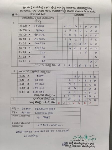 ಮಲೆ ಮಹದೇಶ್ವರ ಮತ್ತೆ ಕೋಟ್ಯಾಧೀಶ..! 23 ದಿನದಲ್ಲಿ 2.33 ಕೋಟಿಗೂ ಅಧಿಕ ಕಾಣಿಕೆ ಸಂಗ್ರಹ..!