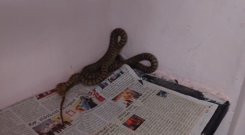 ಗಂಗಾಧರಪ್ಪ ಅವರ ಮನೆಯ ಅಡುಗೆ ಮನೆಯಲ್ಲಿದ್ದ ಡಬ್ಬವೊಂದರಲ್ಲಿ ಈ ಹಾವು ಅಡಗಿಕೊಂಡಿತ್ತು. ಕೆಲಸದ ವೇಳೆ ಇದ್ದಕ್ಕಿದ್ದಂತೆ ಹಾವನ್ನು ಕಂಡು ಮನೆಯವರು ಬೆಚ್ಚಿ ಬಿದ್ದಿದ್ದಾರೆ. ಕೂಡಲೇ ಉರಗ ತಜ್ಞ ಸ್ನೇಕ್ ಶಾಮ್ ಅವರಿಗೆ ಕರೆ ಮಾಡಿ ಮಾಹಿತಿ ನೀಡಿದ್ದಾರೆ. ಸ್ಥಳಕ್ಕೆ ಧಾವಿಸಿದ ಸ್ನೇಕ್ ಶಾಮ್ ಅವರು ಹಾವನ್ನು ಸೆರೆಹಿಡಿದು ಪರಿಶೀಲಿಸಿದಾಗ, ಅದು ಬಲು ಅಪರೂಪದ ‘ಹಾರುವ ಹಾವು’ ಎಂದು ತಿಳಿದುಬಂದಿದೆ.