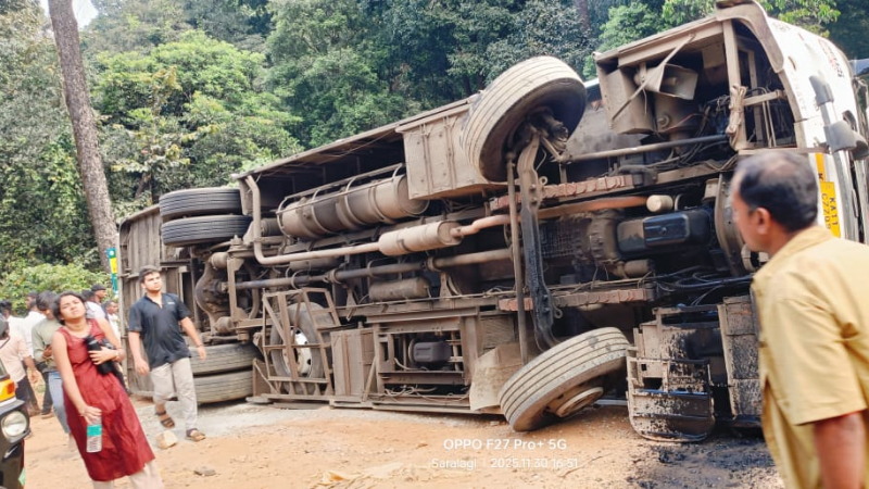 ಮೈಸೂರು, ಡಿಸೆಂಬರ್ 1, 2025 :ಉತ್ತರ ಕನ್ನಡ ಜಿಲ್ಲೆಯ (Uttara Kannada) ಹೊನ್ನಾವರದ (Honnavar) ಸುಳೆ ಮುರ್ಕಿ ಬಳಿ ಪ್ರವಾಸಕ್ಕೆ ಬಂದಿದ್ದ ಶಾಲಾ ಬಸ್ (Accident) ಪಲ್ಟಿಯಾಗಿದೆ. ಅಪಘಾತದಲ್ಲಿ ಓರ್ವ ವಿದ್ಯಾರ್ಥಿ ಸ್ಥಳದಲ್ಲೇ ಸಾವನ್ನಪ್ಪಿದ್ದಾನೆ. ಘಟನೆಯಲ್ಲಿ 26 ಮಂದಿ ಗಾಯಗೊಂಡಿದ್ದಾರೆ.